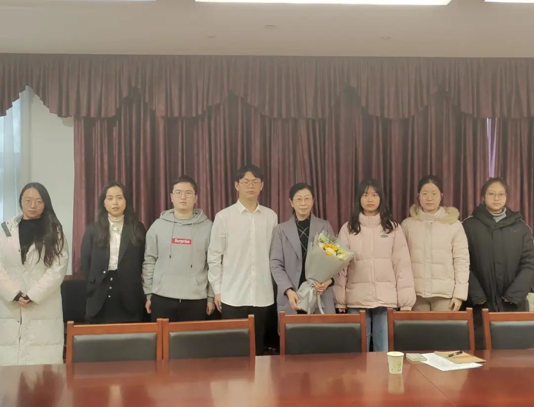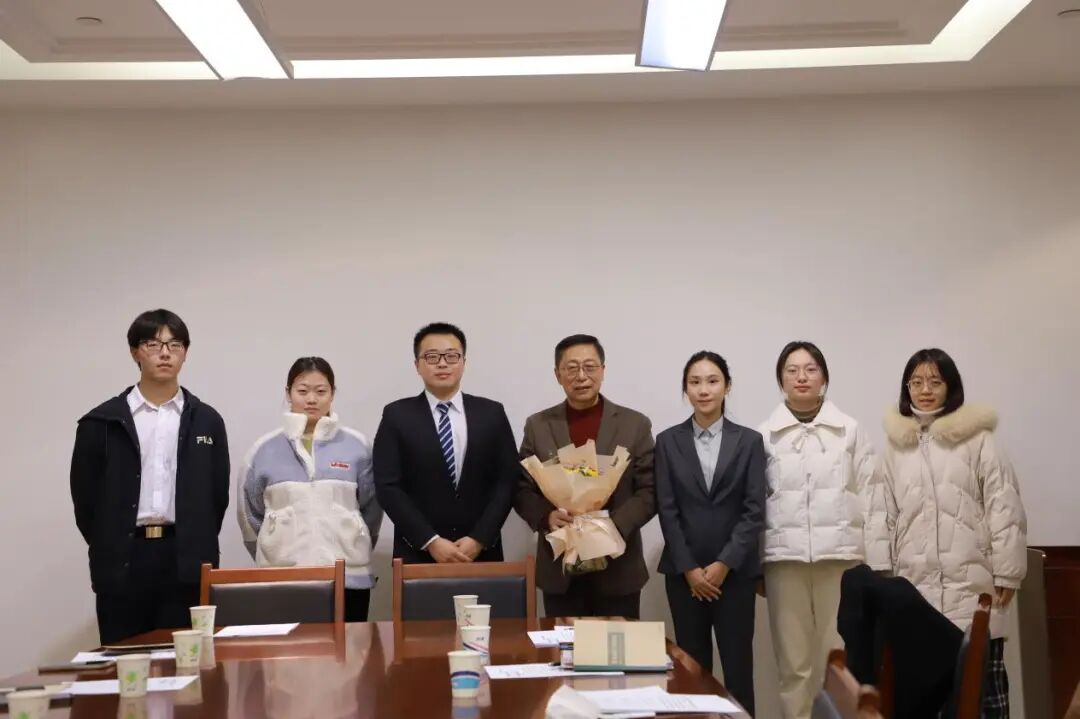 访谈结束后,同学们分别为两位老师送上花束并合影留念。
