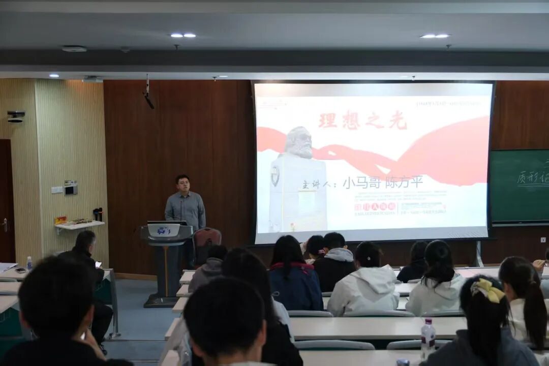 讲座中,陈方平老师以深厚的理论素养和开阔的学术视野,系统阐述了马克思主义创始人卡尔·马克思的思想体系。他围绕指导思想、学术成就、理论勇气与人格魅力四个维度层层展开,将马克思的人生轨迹与理论贡献娓娓道来,使这位思想巨匠的形象跃然于课堂,理论的光芒照进现实。